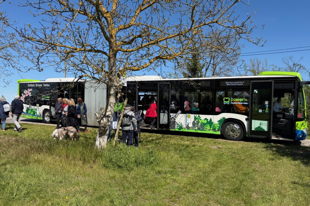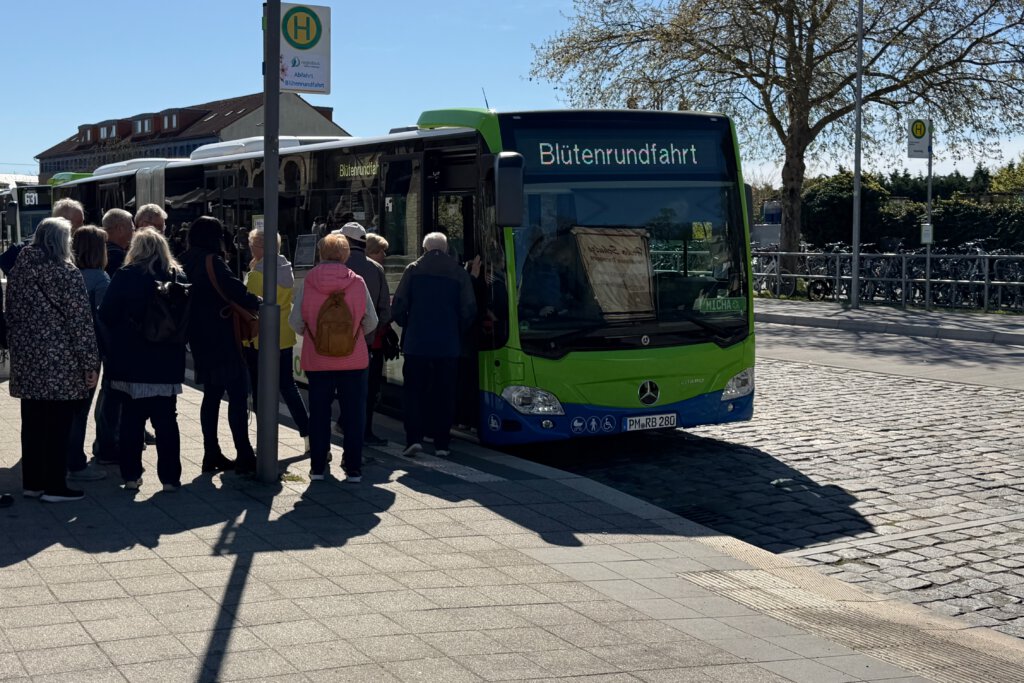 - Vom Bahnhof fährt ein Blütenbus mit einem Hopp-on-Hopp-off-Konzept zu den Höfen in den Ortsteilen