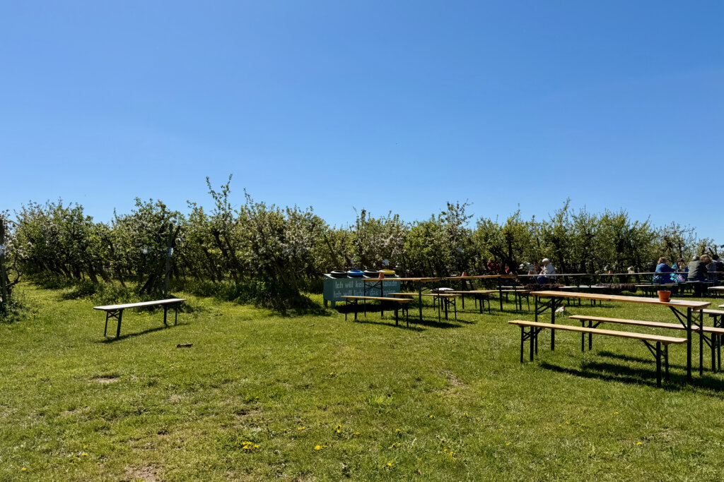 Das Angebot an Speisen und Getränken ist vielseitig. Du genießt zwischen Obstbäumen und einer Bühne quasi eine Fusion zwischen dem Volksfest und dem privaten Obsthof. Auch hier ist die Bewirtung sehr freundlich. An den Wochenenden und am 1. Mai gibt es Livemusik.