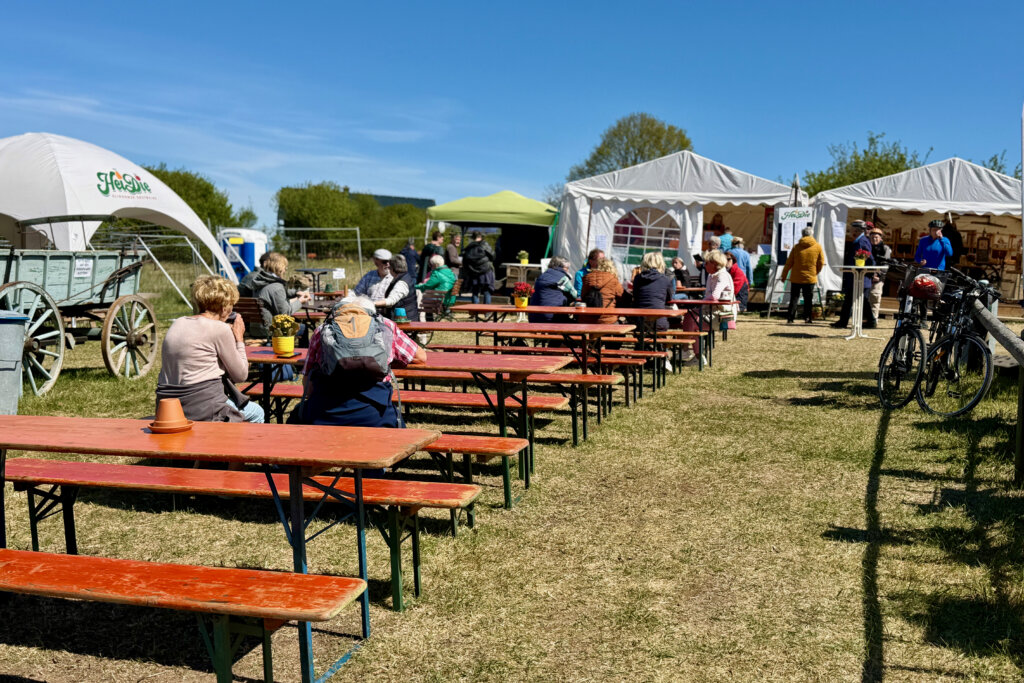 Im Hintergrund lief leise Musik aus einer Box. Die Besucher unterhielten sich, lachten, genossen den warmen Frühlingstag. Auf das breite kulinarische Angebot auf Seifferts Streuobstwiese habe ich schon hingewiesen. Du kannst bargeldlos zahlen, was uns besonders gefreut hat.
