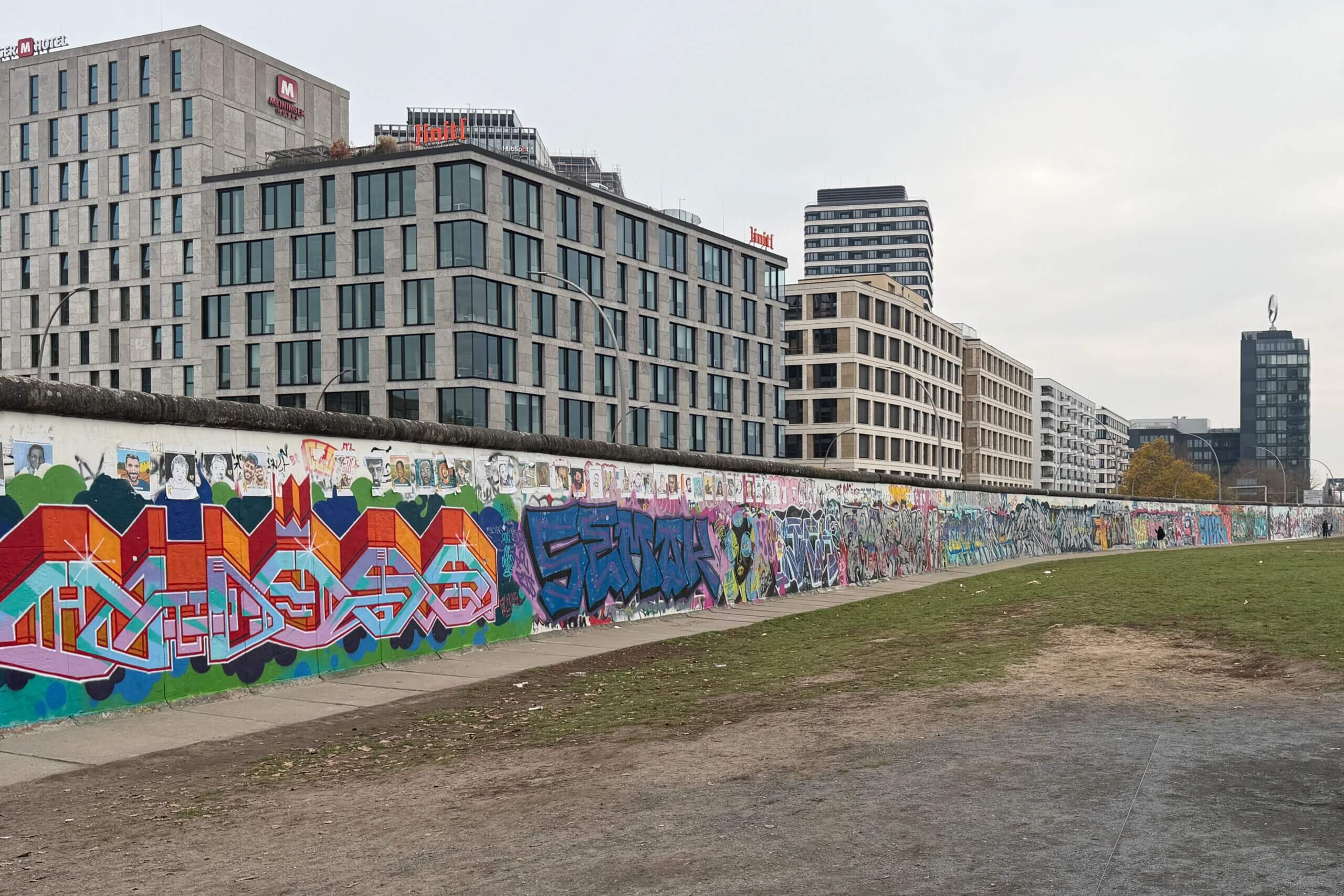Nimm dir Zeit und schau dir auch die anderen Kunstwerke an. Wir haben bis heute im Hinterkopf, dass wir auch hier eine Straße entlang spazieren, die einst zum Grenzgebiet gehörte. Dass sich diese Mauer mitten durch Berlin zog und Menschen voneinander trennte, wird an der East Side Gallery besonders deutlich.