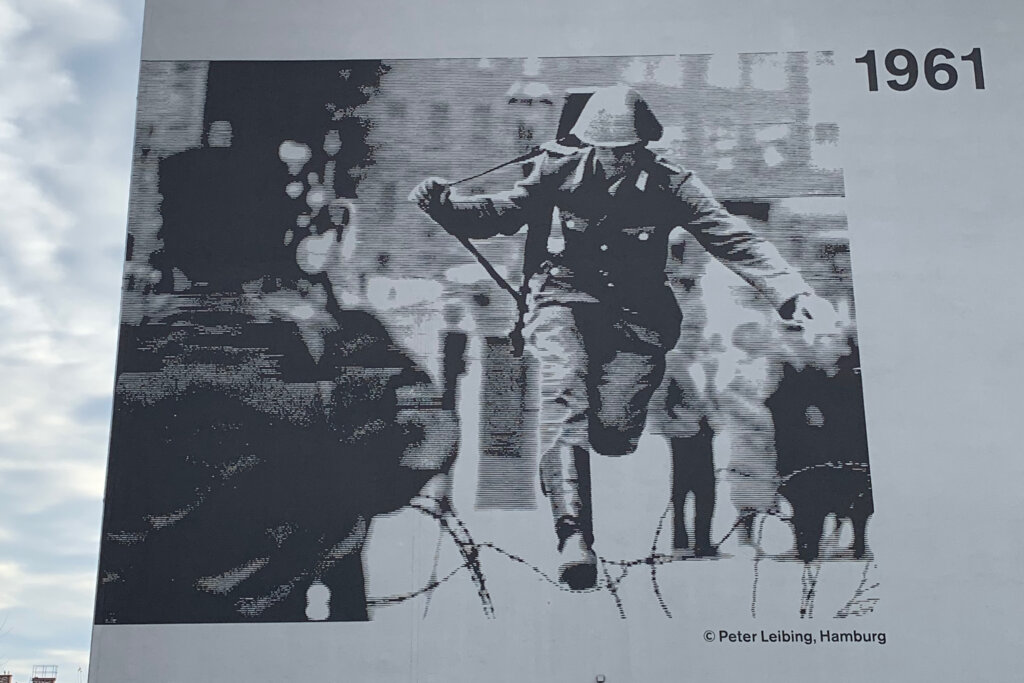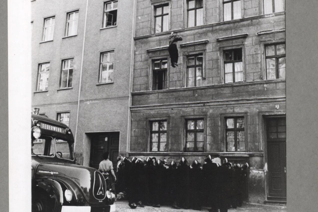 Kennst du die Bilder vom 13. August 1961? Menschen springen in Berlin aus dem Fenster in die Freiheit. Das Gebäude befand sich im sowjetischen Sektor. Der Gehweg davor gehörte zum Sektor der französischen Alliierten. Die Schließung der Grenze versetzte die Menschen im sowjetischen Sektor in Panik. Nicht alle überlebten den Sprung: Es gab Todesopfer, die das Sprungtuch verfehlten oder in Panik auf den Gehweg sprangen.