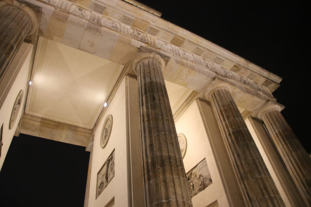 Viele Menschen laufen oder fahren durch das Brandenburger Tor, ohne die Wirkung dieses Bauwerks bewusst wahrzunehmen. Unser Tipp: Wenn du Fotos des eindrucksvollen Bauwerks aufgenommen hast, dann nimm dir noch ein bisschen Zeit. Durchquere das Tor bewusst in der Mitte. Über viele Jahrzehnte war das nicht möglich: Zur Kaiserzeit durfte nur die kaiserliche Familie mit ihren Gästen die mittleren Säulen durchqueren. Während der Teilung war das gesamte Tor gesperrt.
