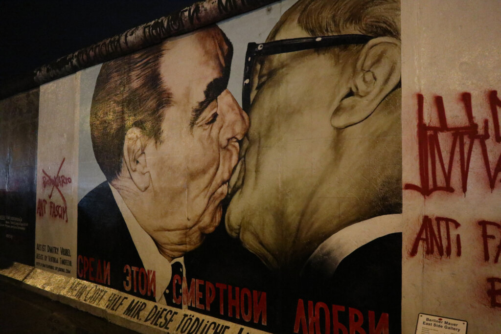 In den 1990er-Jahren begannen Künstler mit der Gestaltung der Mauerfläche, die dem Osten Berlins zugewandt war. Es entstanden Kunstwerke, die berühmt wurden. Allen voran der Bruderkuss: Wir wurden von Besuchern der Stadt schon häufiger gefragt, wo dieses Bild zu sehen ist. Wenn du mit dem Bus der Linie 300 fährst, steigst du an der Tamara-Danz-Straße aus. Etwa in diesem Bereich kannst du das Kunstwerk bewundern.