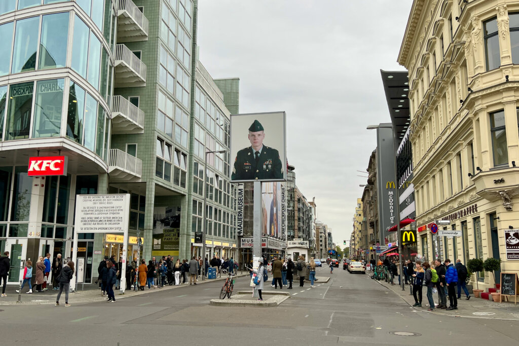 Der Checkpoint Charlie liegt etwa einen Kilometer entfernt. Es handelte sich um einen Grenzübergang für Diplomaten und das Militär. An dem geschichtsträchtigen Ort standen sich Panzer gegenüber. Ganz in der Nähe, in der Zimmerstraße verblutete Peter Fechter auf dem Grenzstreifen. Nachdem er bei seinem Fluchtversuch angeschossen wurde, half ihm niemand.