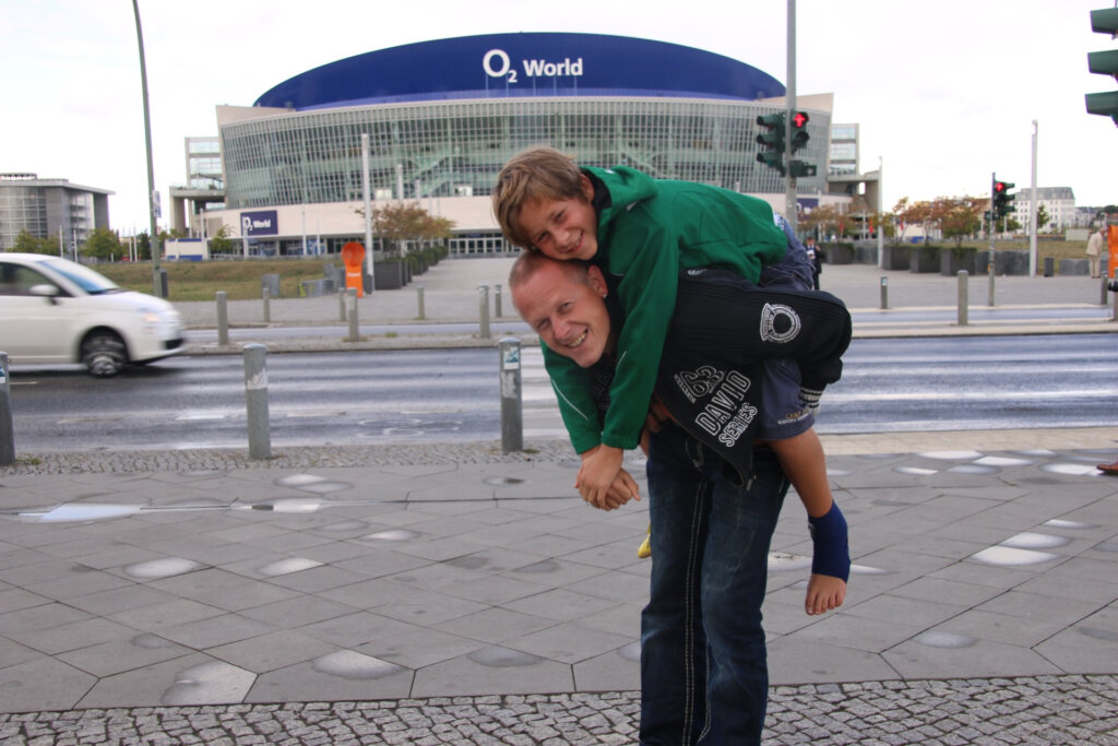 Für die individuelle Geschichtsstunde vor Ort warf der Papa den Sohnemann lässig über die Schulter. Wenn ich heute an dieser Ampel stehe, muss ich an den Nachmittag denken. Es war wirklich etwas beschwerlich, den damals Zwölfjährigen durch Berlin zu tragen. Doch wir waren manchmal einfach ein bisschen verrückt.