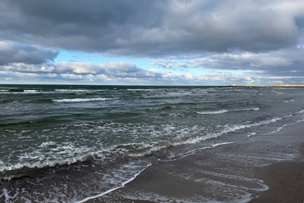 Wir lieben das Meer und hatten spontan Lust, für einen Spaziergang an die Ostsee zu fahren. Von Berlin nach Warnemünde kannst du mit dem Deutschlandticket ohne Zusatzkosten reisen. Die Fahrzeit beträgt etwa dreieinhalb Stunden. Du steigst dreimal um, aber das gestaltete sich sehr entspannt. Sechs Stunden spazierten wir entlang des alten Stroms zur Mole und liefen dann am Strand entlang. In einem griechischen Restaurant wärmten wir uns auf, bevor wir noch einmal den weiten Blick auf die Ostsee und die Schiffe genossen, die auch im Winter den Hafen ansteuern oder verlassen. Die kleine Auszeit an einem Sonnabend im Februar hat uns gut getan.