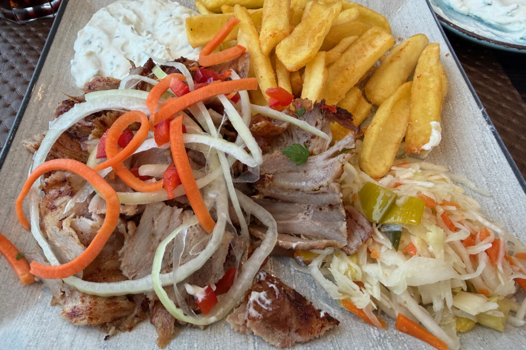 Das Restaurant Hellas in Warnemünde ist wirklich eine Empfehlung. Die Preise sind branchentypisch. Uns hat gefallen, dass es alle Gerichte mit geringerer Menge zu einem um zwei bis drei Euro reduzierten Preis angeboten wurden. Uns hat das klassische Gyros nach einer Vorspeise mit Knoblauchbrot uns Tzaziki völlig ausgereicht.